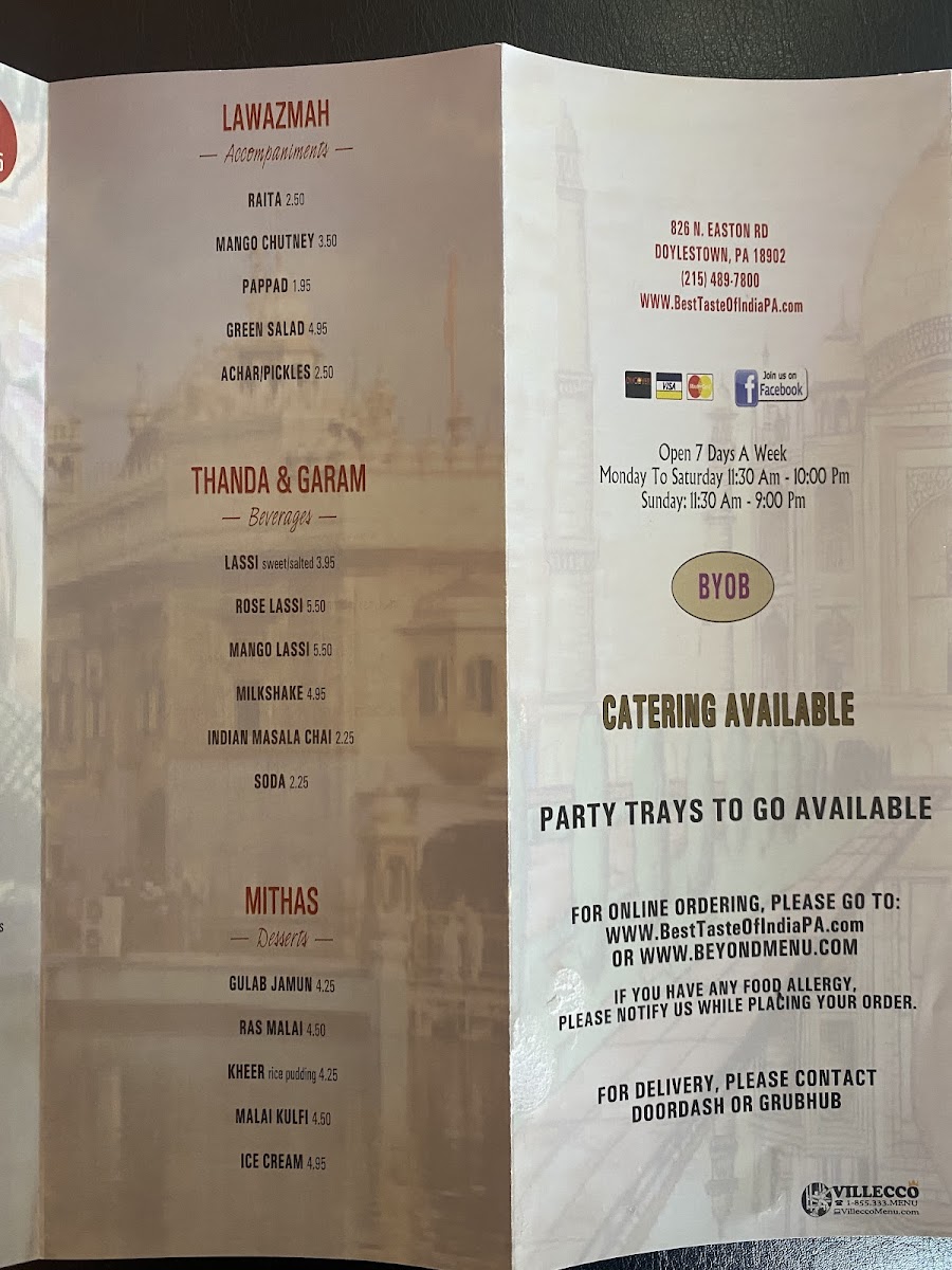 Overall, Best Taste of India 2 offers a wide-ranging, diverse menu filled with authentic Indian flavors that will leave any diner satisfied. Whether you’re a fan of spicy, rich curries or prefer lighter, vegetarian options, there's something for everyone at this cozy restaurant in Doylestown.